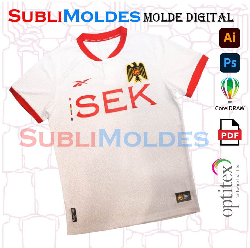 Este molde de camiseta tipo fútbol Unión Española es una excelente opción para crear prendas deportivas profesionales con alto potencial comercial.